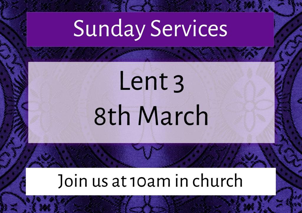 Join us this Sunday (Lent 3) for our usual (said) communion service at 8.00am, Parish Eucharist at 10am. You are always welcome at all and any of our services. If you’d like to spend some time in quiet reflection and prayer, the church is open this coming week Monday – Friday from around 10am – 3pm (Wednesday from 11am).